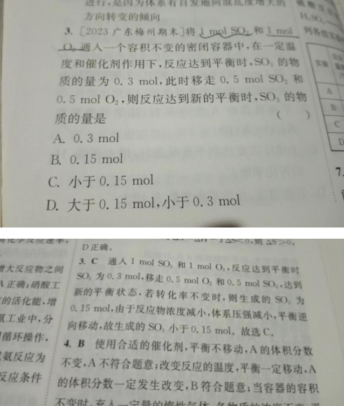 高中化学小题狂做选择性必修一 36页的第三题 为什么转化度不变时生成的SO3为0.15,这个是怎么算出来的?